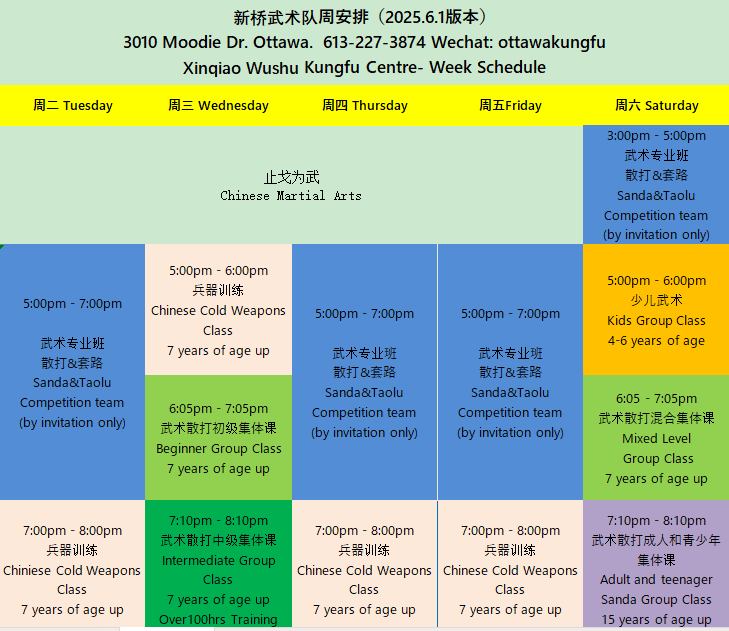 Address: 3010Moodie Dr. Nepean,Ottawa,ON K2J4S7 Xinqiao Wushu Kungfu Centre